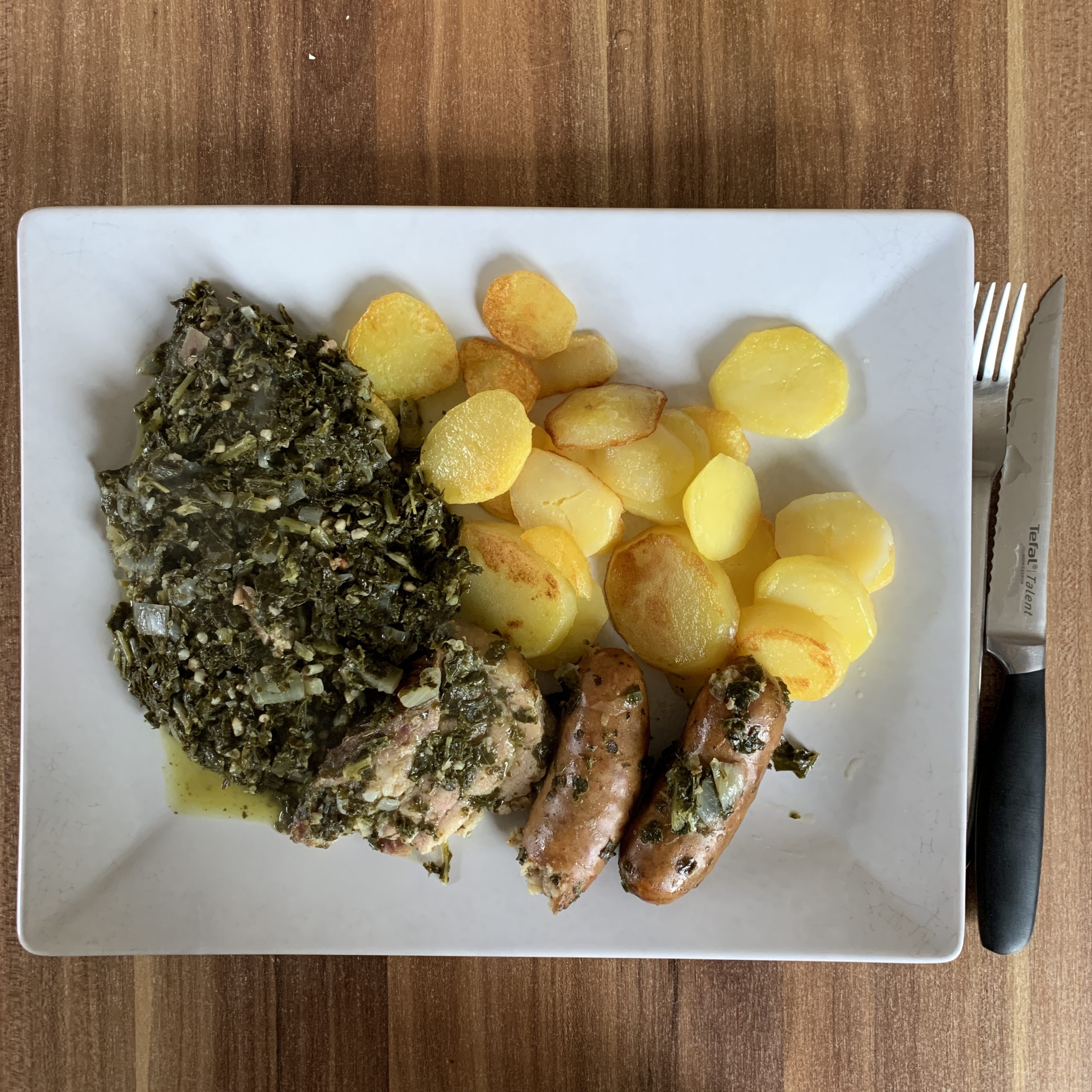 Daniel hat den Grünkohl mit russischer Wurst und Kartoffelmuffins zubereitet: