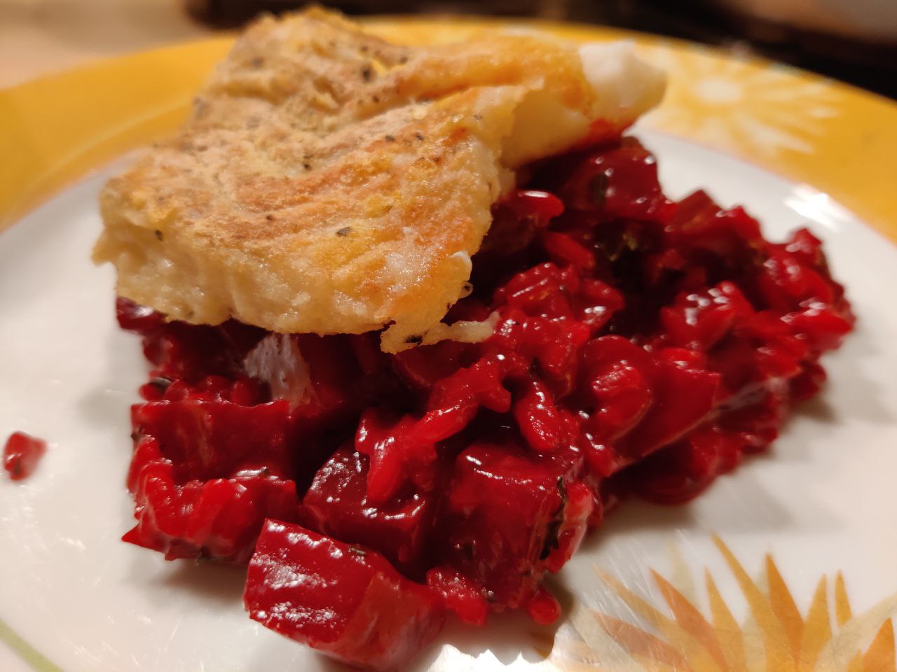 immer wieder ablöschen (Wein und Rote Beete Saft) und rühren immer