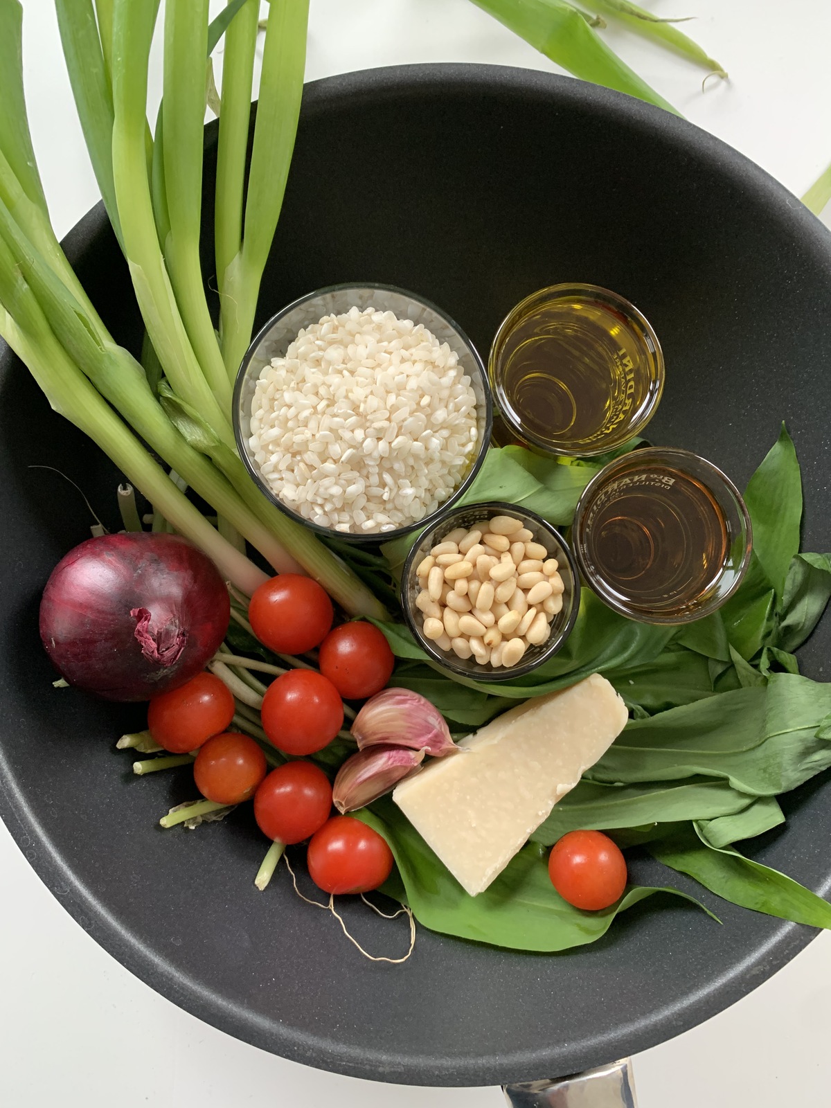 Knoblauchzehe aulassen und dann den Risotto rein ca. 2 Minuten mit anrösten.